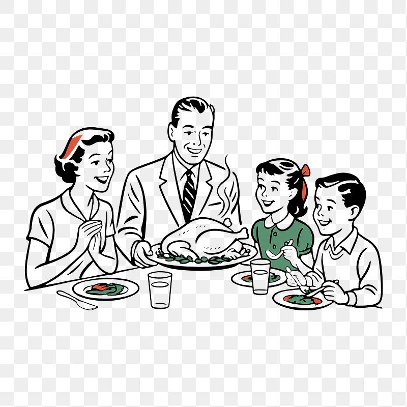 PNG Retro family enjoying dinner together. https://www.rawpixel.com/image/20776833/png-retro-family-enjoying-dinner-togetherView license