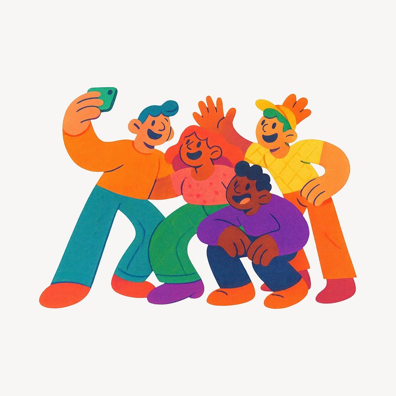 PNG Colorful friends taking selfie https://www.rawpixel.com/image/21420168/png-colorful-friends-taking-selfieView license