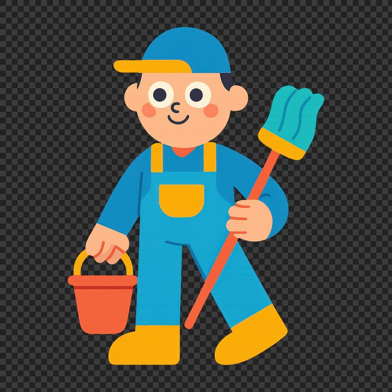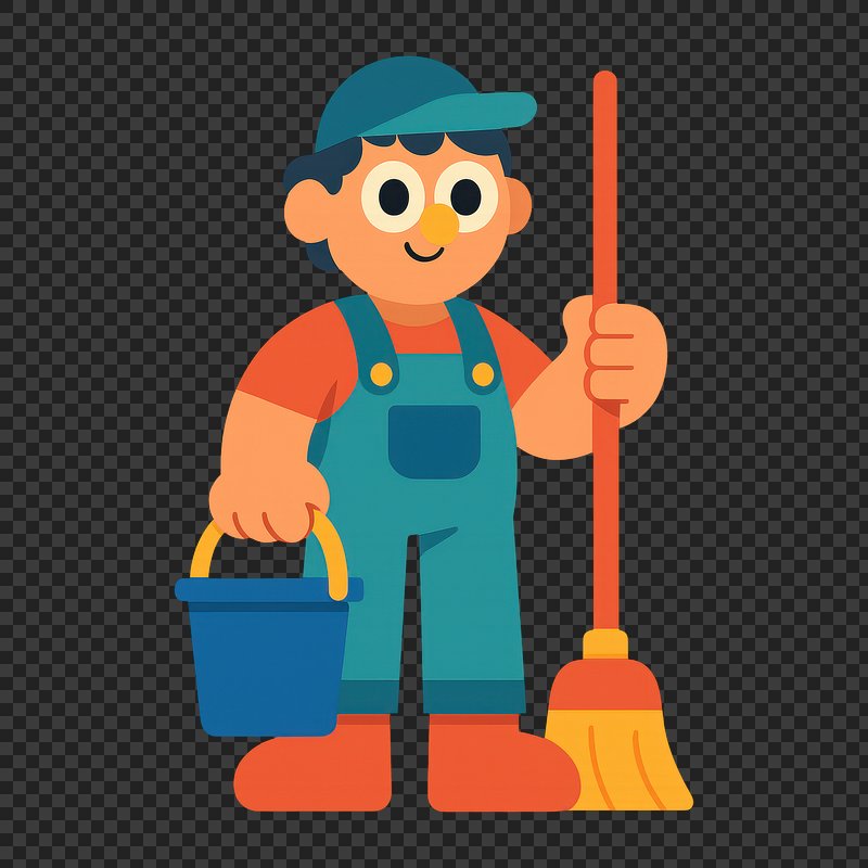 PNG Cartoon cleaner with broom bucket https://www.rawpixel.com/image/21907750/png-cartoon-cleaner-with-broom-bucketView license