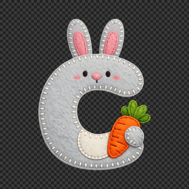 PNG Cute felt bunny letter. https://www.rawpixel.com/image/25437792/png-cute-felt-bunny-letterView license