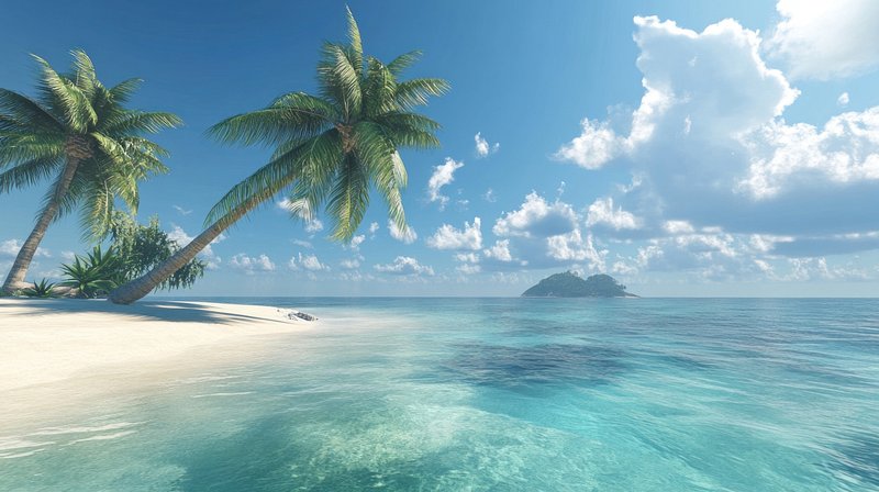 A tropical beach scene with palm trees and crystal-clear water sky relaxing vacation. https://www.rawpixel.com/image/16981358/photo-image-background-blue-sky-palm-treesView license