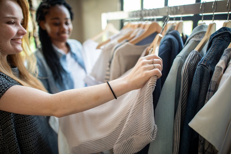 Women shopping clothes together happily https://www.rawpixel.com/image/26019158/women-shopping-clothes-together-happilyView license