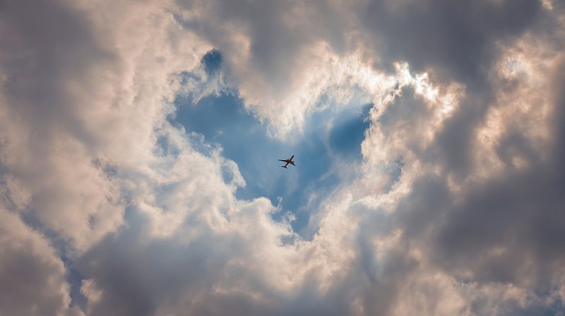 Airplane framed by heart-shaped clouds https://www.rawpixel.com/image/24555687/airplane-framed-heart-shaped-cloudsView license