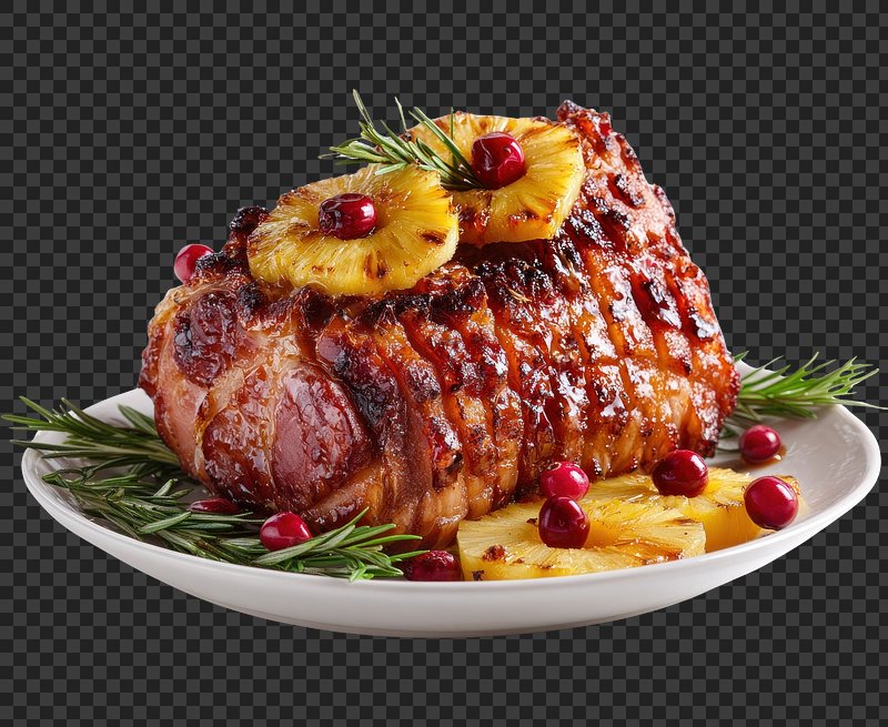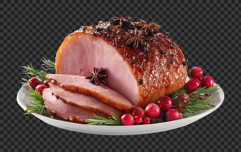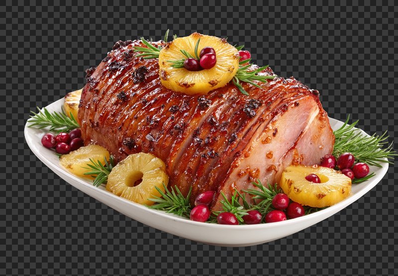 PNG Glazed ham with festive garnishes. https://www.rawpixel.com/image/24020554/png-glazed-ham-with-festive-garnishesView license