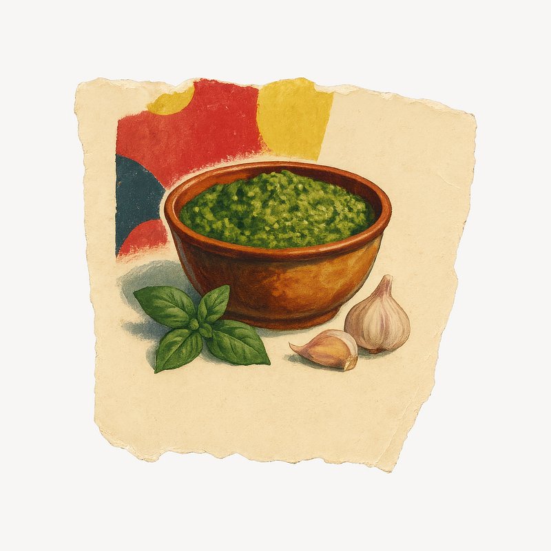 Rustic pesto bowl illustration. https://www.rawpixel.com/image/24565180/rustic-pesto-bowl-illustrationView license