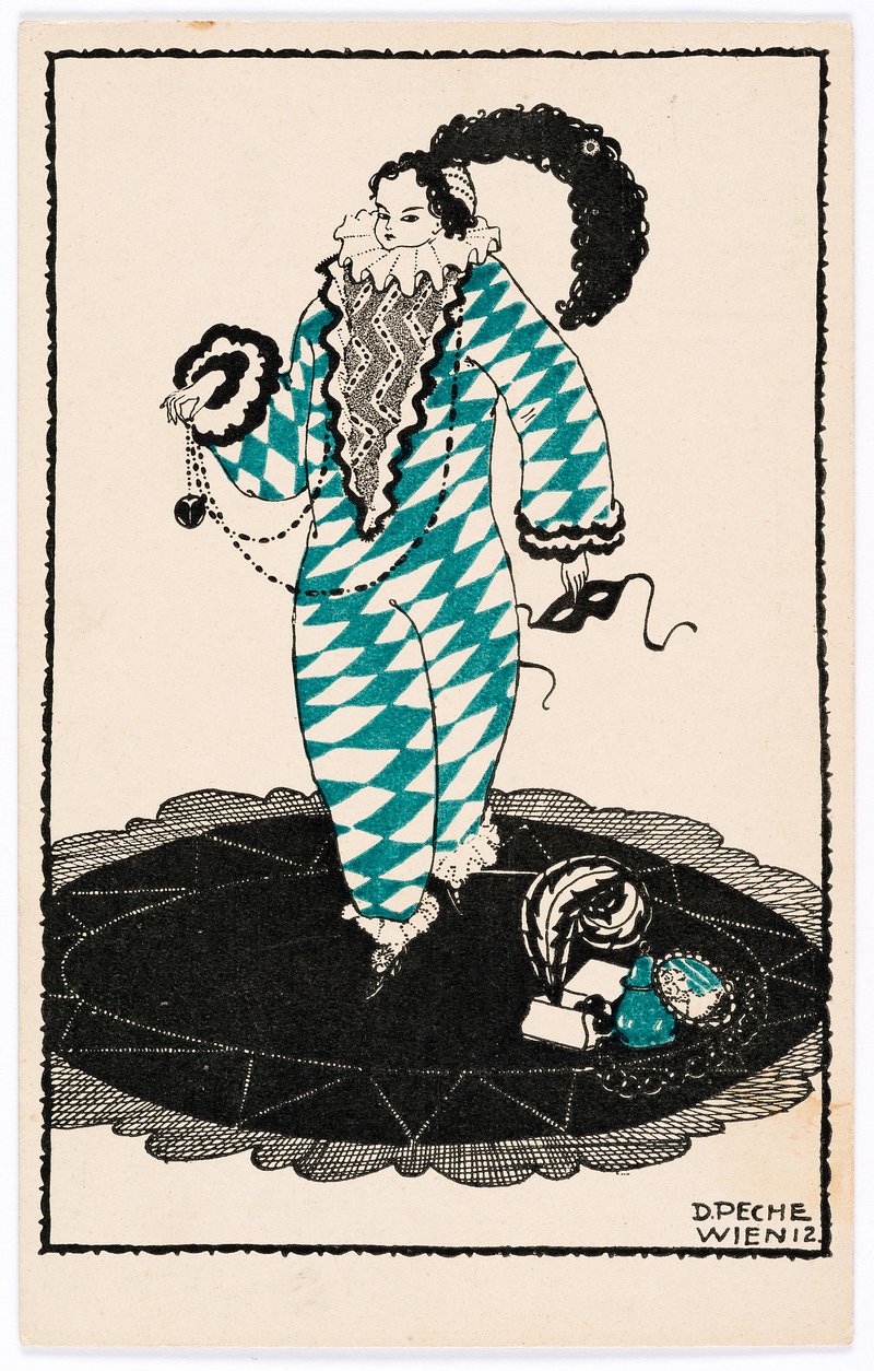 Postcard from the Wiener Werkstätte No. 625: Harlequin (1912) by Dagobert Peche and Wiener Werkstätte https://www.rawpixel.com/image/11564943/image-cartoon-art-vintageFree Image from public domain license