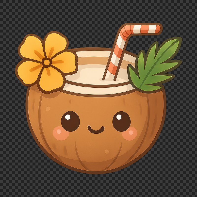 PNG Cute tropical coconut drink illustration. https://www.rawpixel.com/image/18317477/png-cute-tropical-coconut-drink-illustrationView license