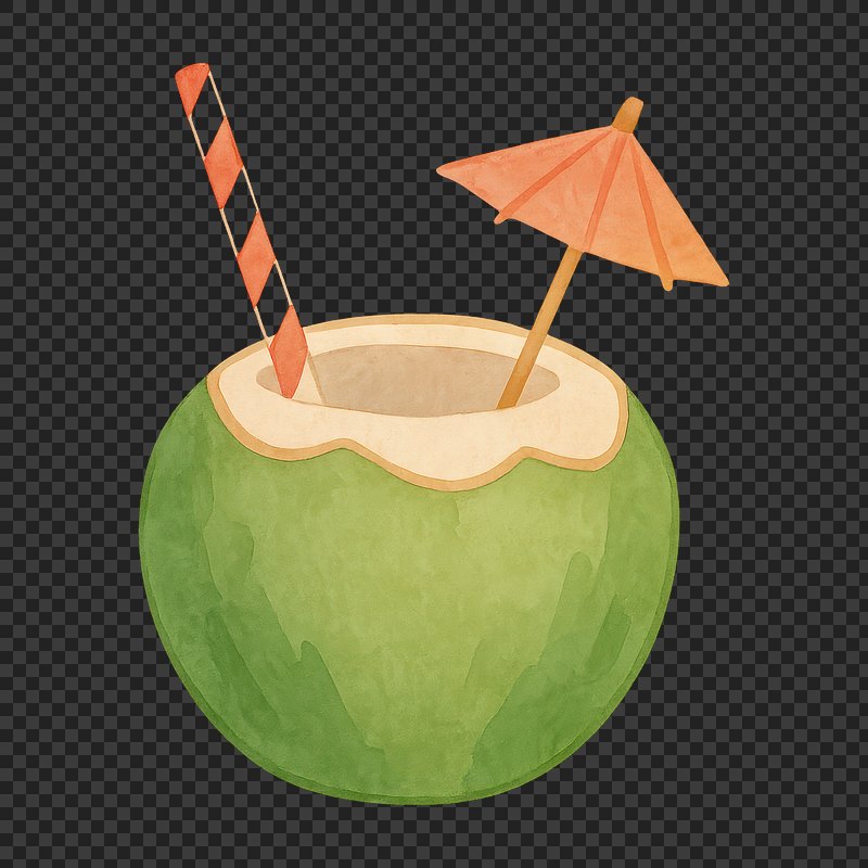 PNG Refreshing tropical coconut drink illustration. https://www.rawpixel.com/image/19127743/png-refreshing-tropical-coconut-drink-illustrationView license