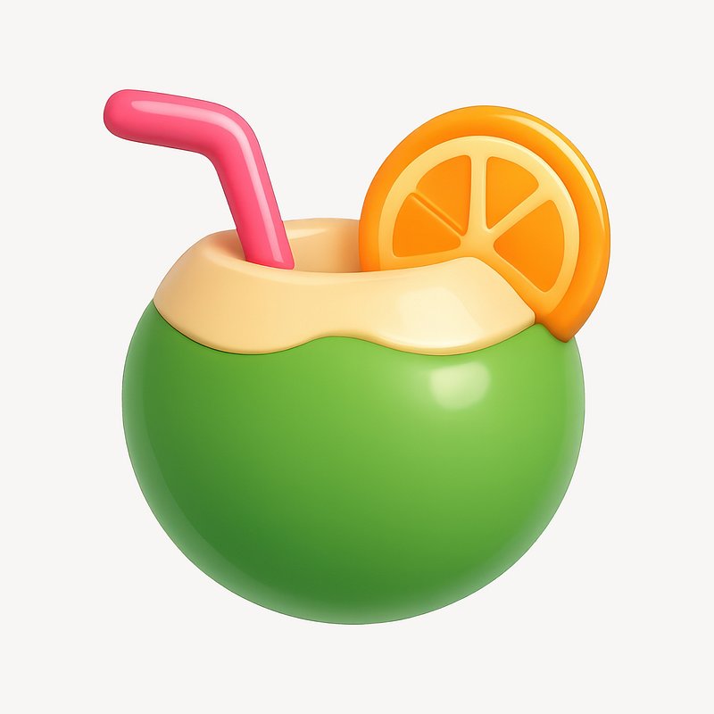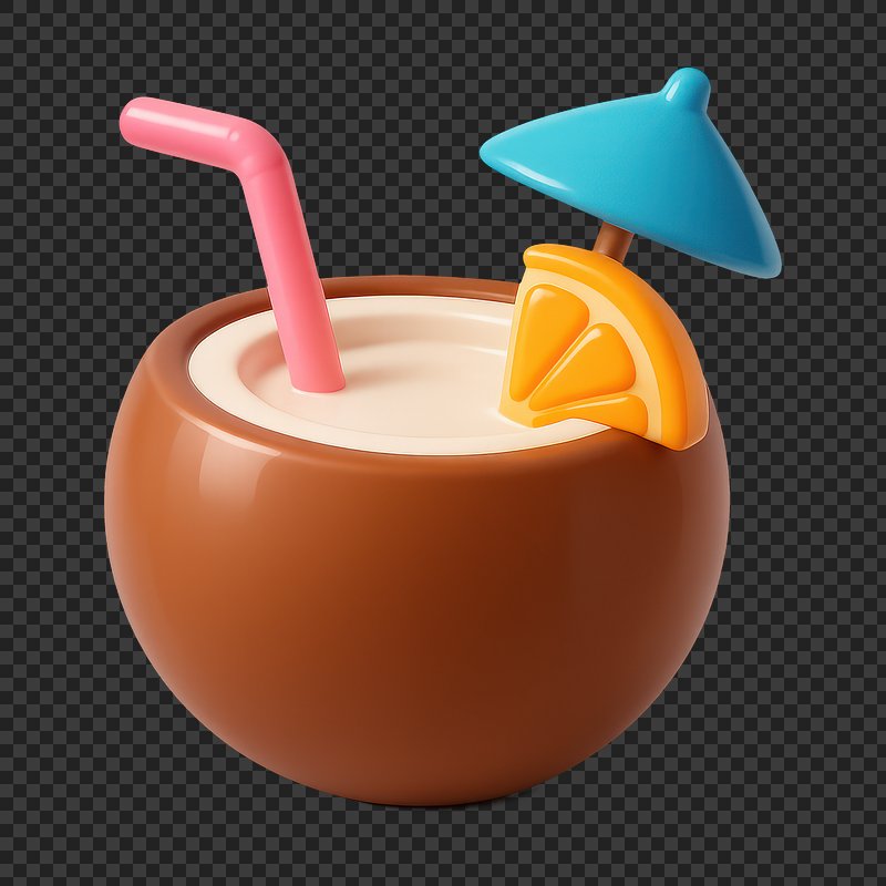 Png aesthetic coconut drink sticker, 3D rendering, transparent background https://www.rawpixel.com/image/6917543/png-aesthetic-flowerView license