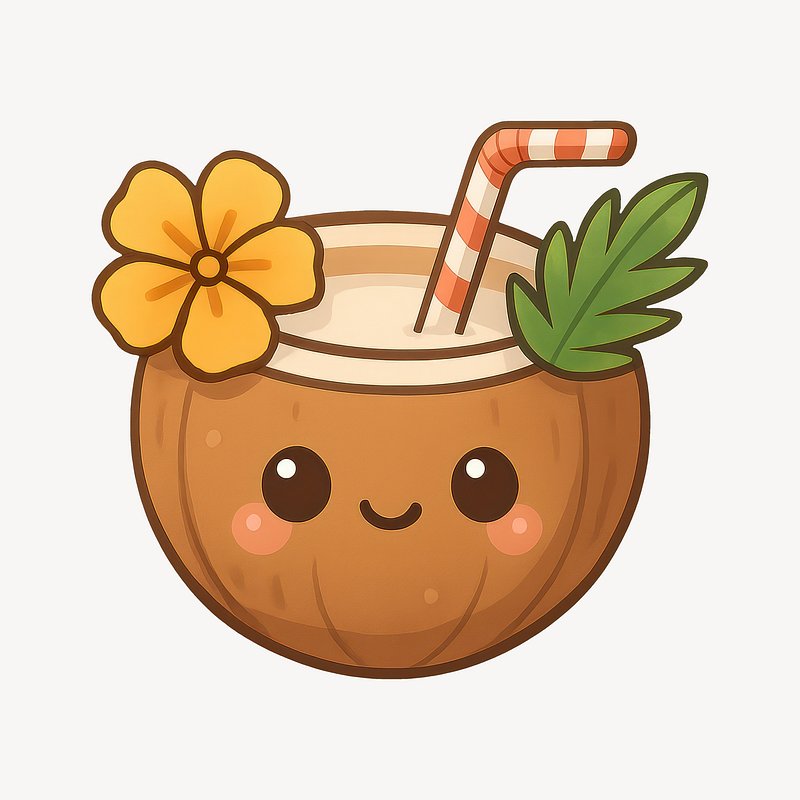 Cute tropical coconut drink illustration. https://www.rawpixel.com/image/19011934/cute-tropical-coconut-drink-illustrationView license