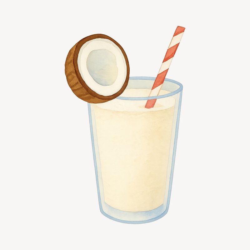 Creamy coconut milkshake illustration. https://www.rawpixel.com/image/19373328/creamy-coconut-milkshake-illustrationView license