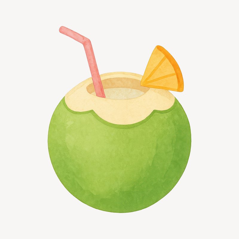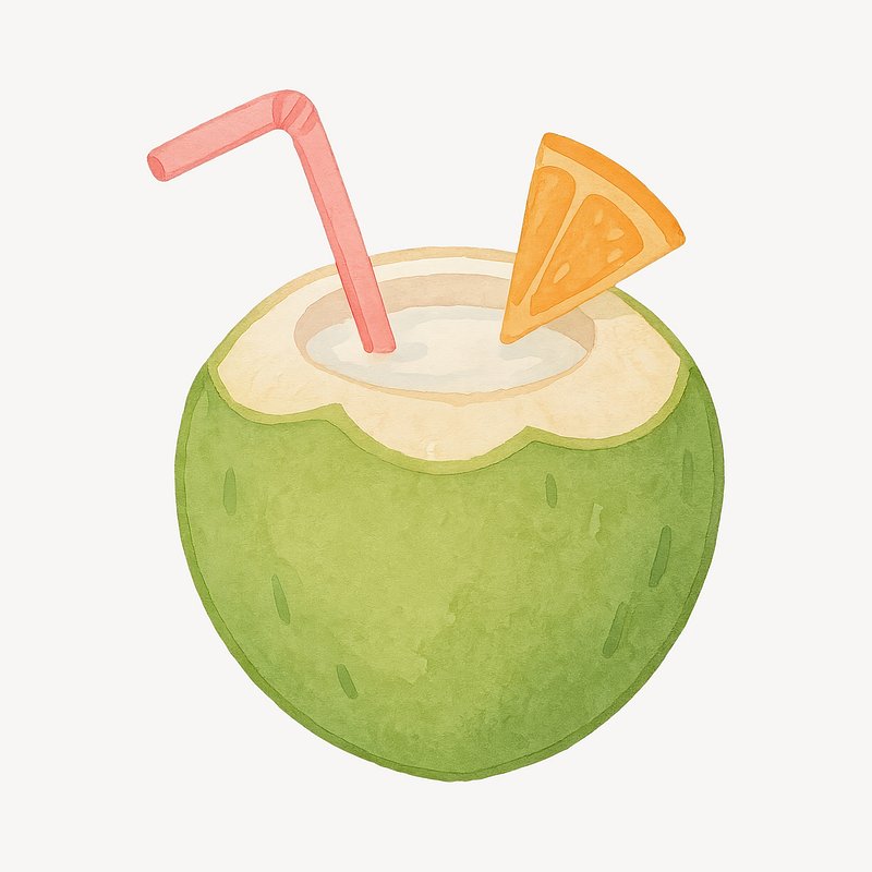 Refreshing coconut drink illustration. https://www.rawpixel.com/image/19374992/refreshing-coconut-drink-illustrationView license
