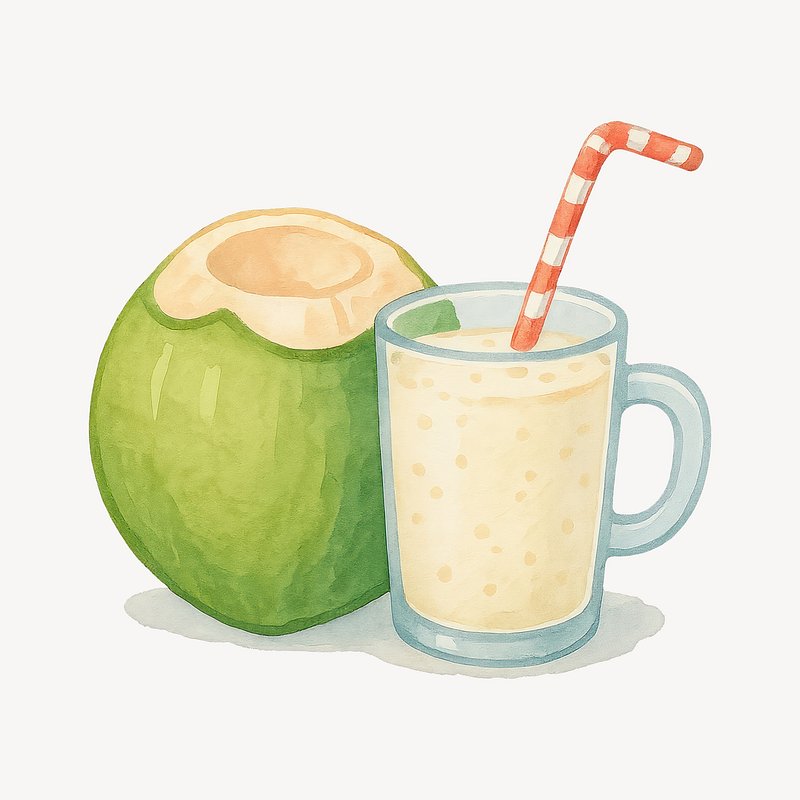 Refreshing coconut smoothie illustration. https://www.rawpixel.com/image/20745197/refreshing-coconut-smoothie-illustrationView license