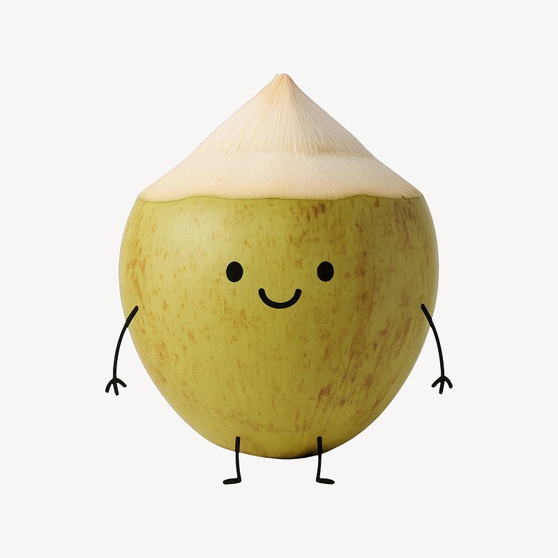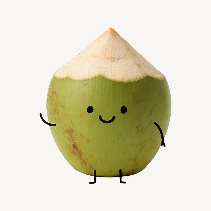 Cute coconut cartoon character https://www.rawpixel.com/image/21869209/cute-coconut-cartoon-characterView license