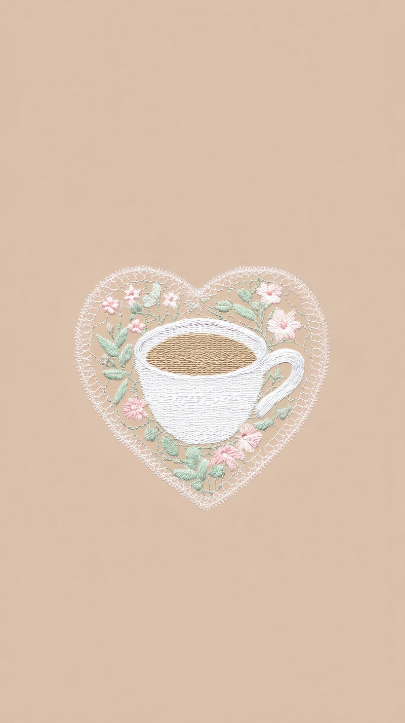 Delicate heart coffee embroidery. https://www.rawpixel.com/image/25827292/delicate-heart-coffee-embroideryView license