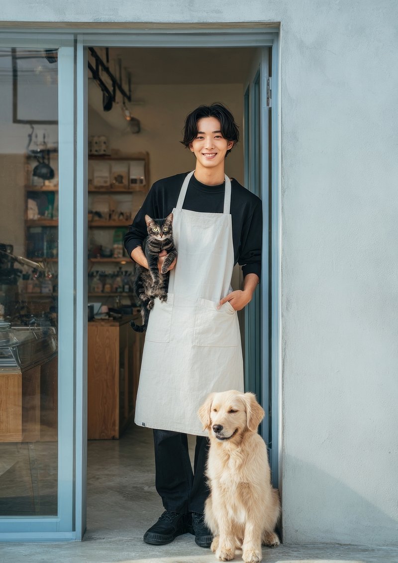 Smiling barista with pets https://www.rawpixel.com/image/25041746/smiling-barista-with-petsView license