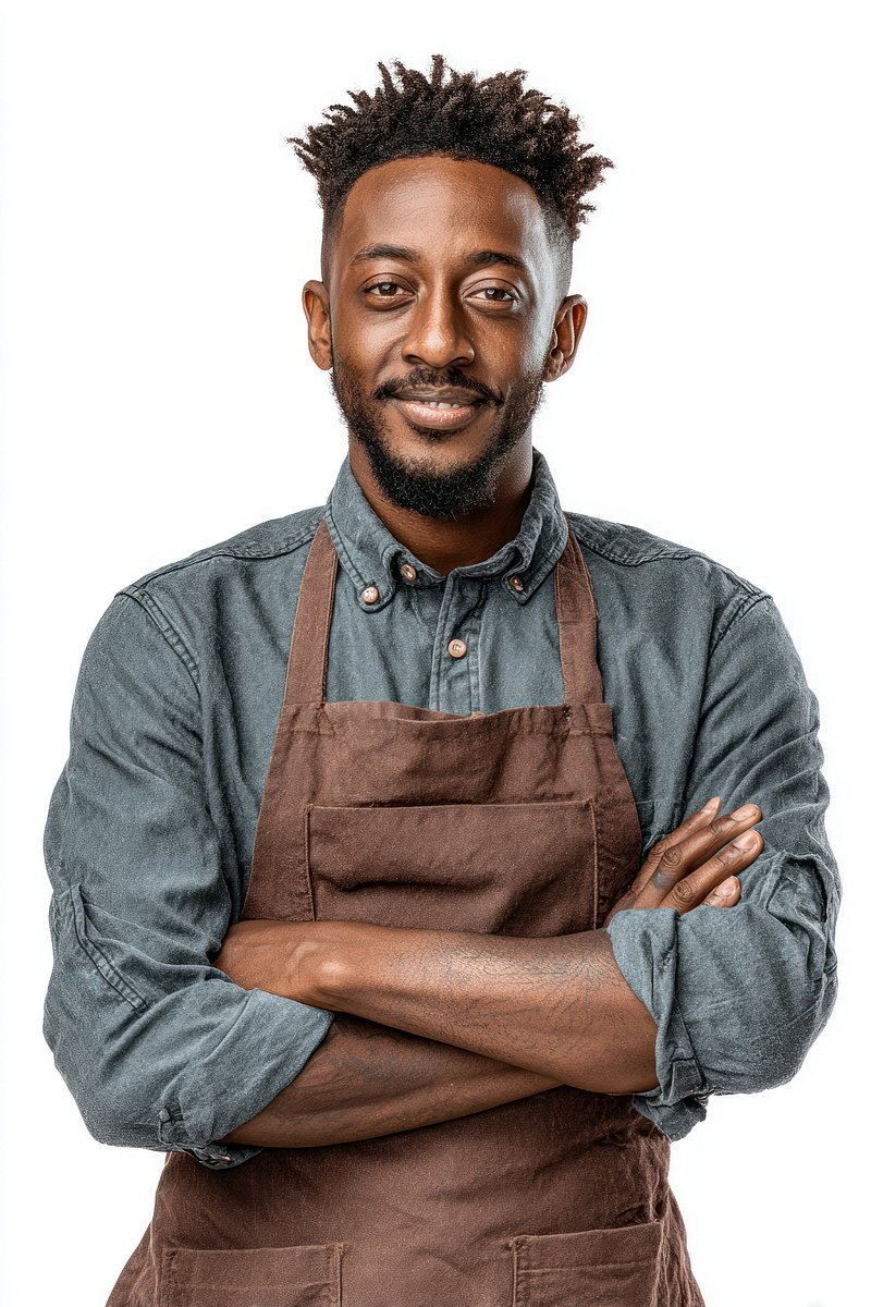 PNG Smiling man wearing brown apron. https://www.rawpixel.com/image/25816215/png-smiling-man-wearing-brown-apronView license