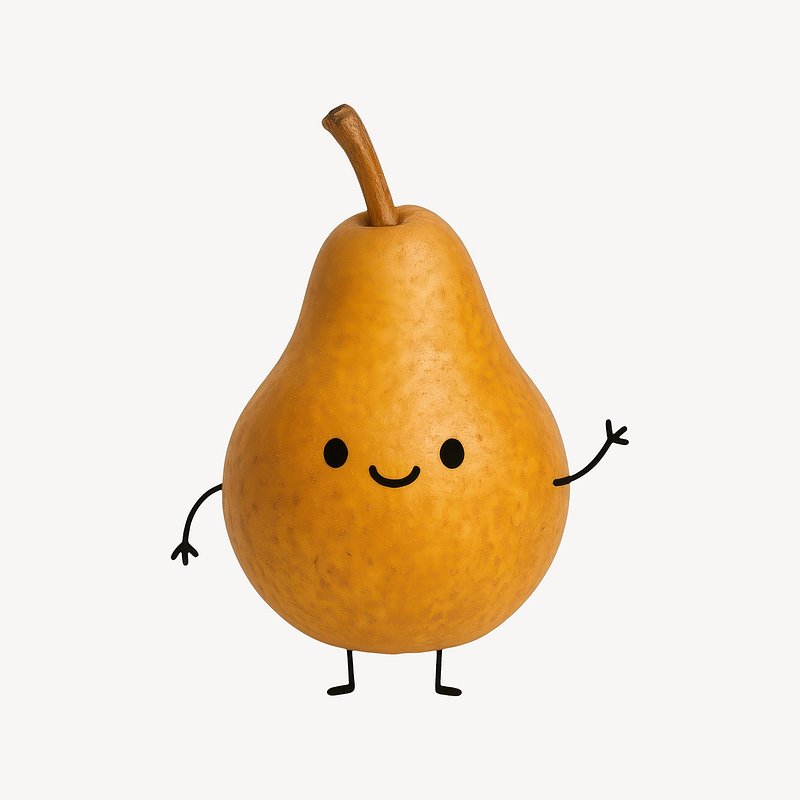 Cheerful anthropomorphic pear illustration. https://www.rawpixel.com/image/21865410/cheerful-anthropomorphic-pear-illustrationView license