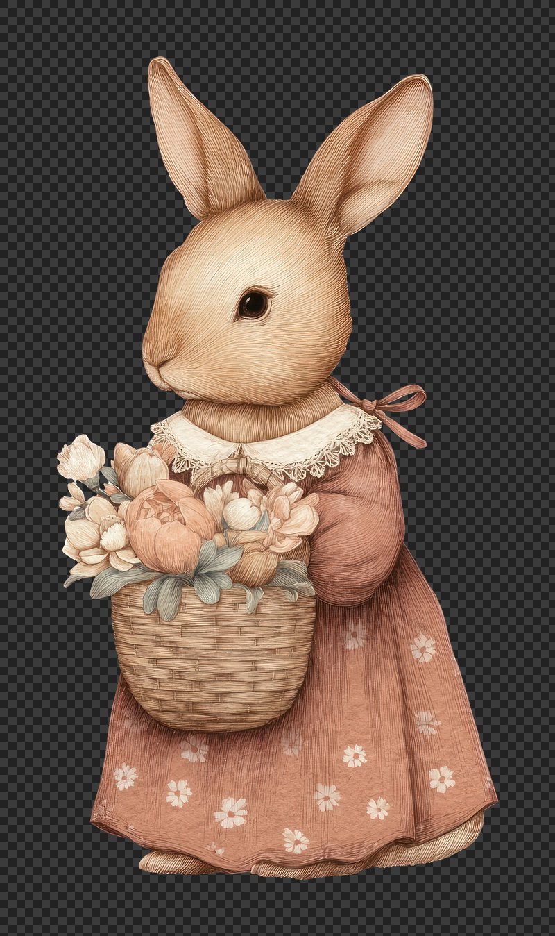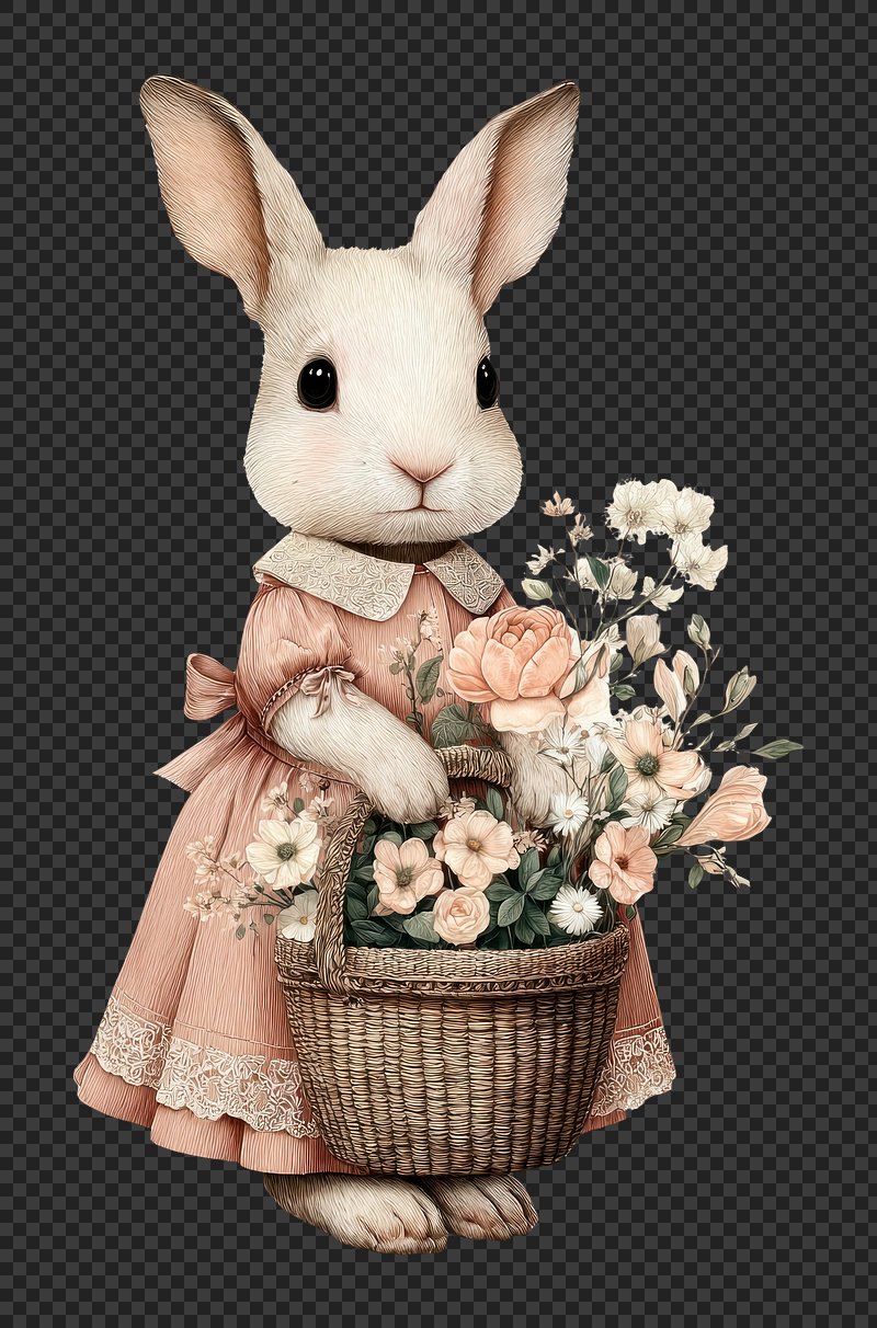 PNG Charming rabbit with floral basket. https://www.rawpixel.com/image/24928665/png-charming-rabbit-with-floral-basketView license