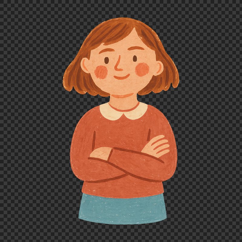 Illustrated girl with crossed arms. https://www.rawpixel.com/image/24856686/illustrated-girl-with-crossed-armsView license