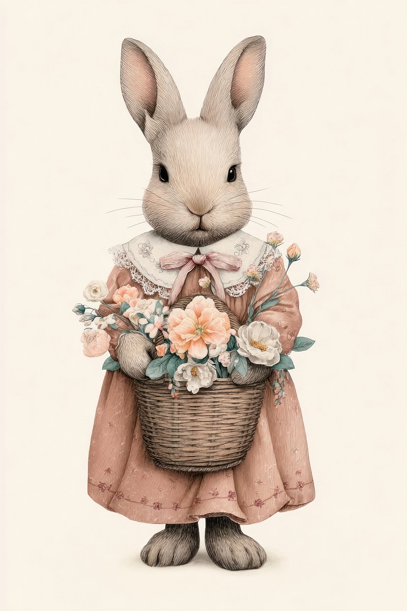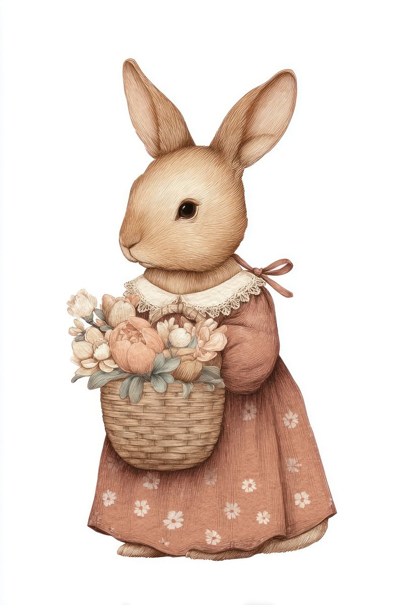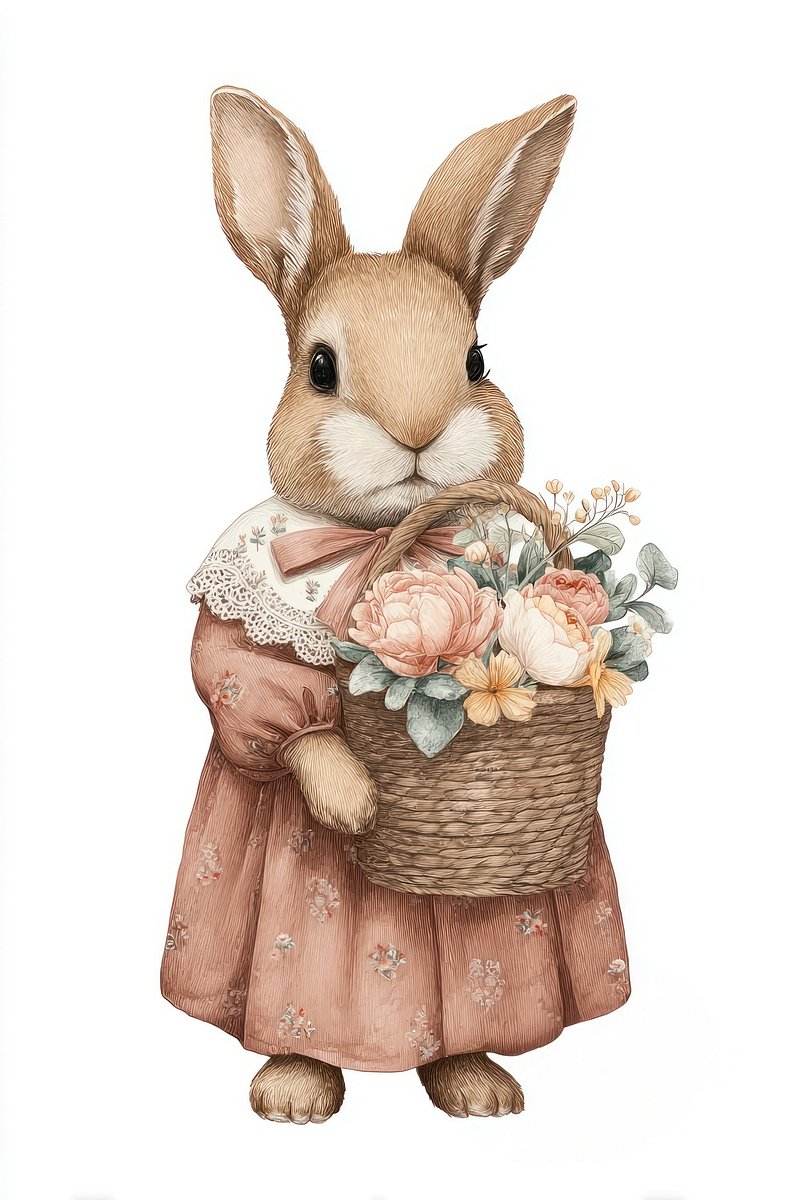Charming rabbit with floral basket. https://www.rawpixel.com/image/24890237/charming-rabbit-with-floral-basketView license