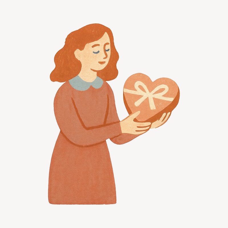 Woman holding heart-shaped gift. https://www.rawpixel.com/image/24855142/woman-holding-heart-shaped-giftView license