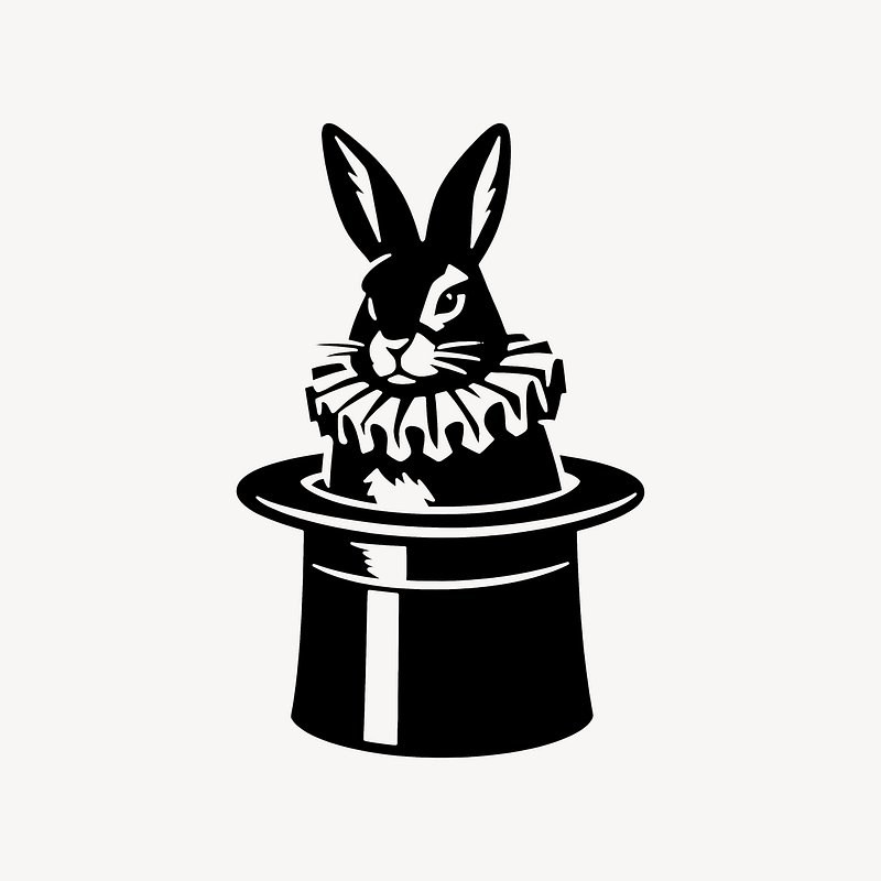 Rabbit emerging magician's hat. https://www.rawpixel.com/image/25626231/rabbit-emerging-magicians-hatView license