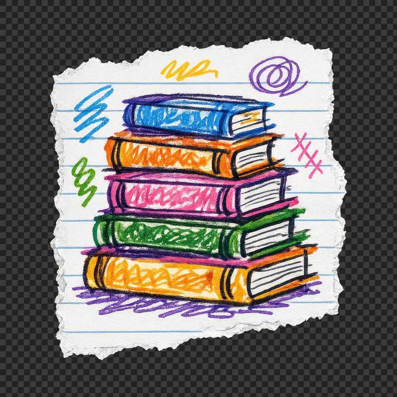 PNG Colorful sketchy stacked books illustration. https://www.rawpixel.com/image/25609137/png-colorful-sketchy-stacked-books-illustrationView license