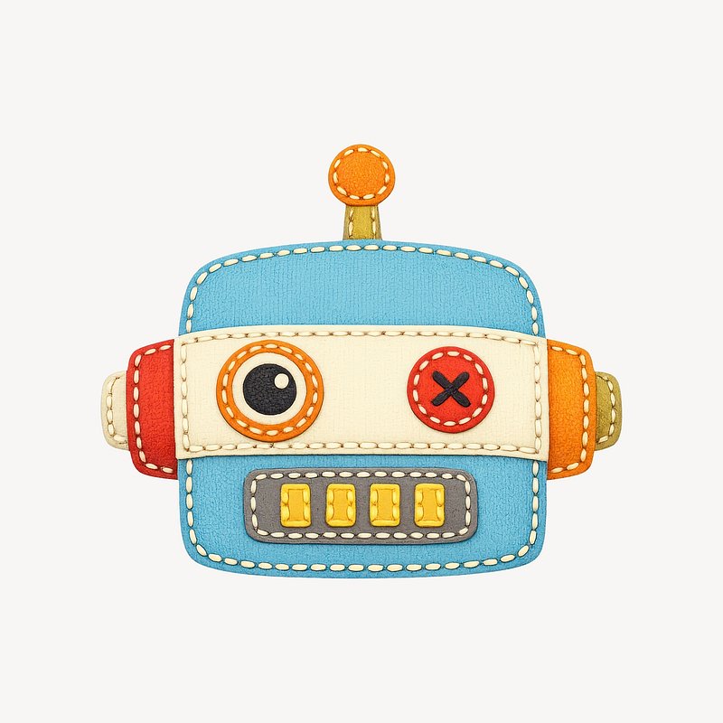 Colorful stitched robot illustration https://www.rawpixel.com/image/25791357/colorful-stitched-robot-illustrationView license