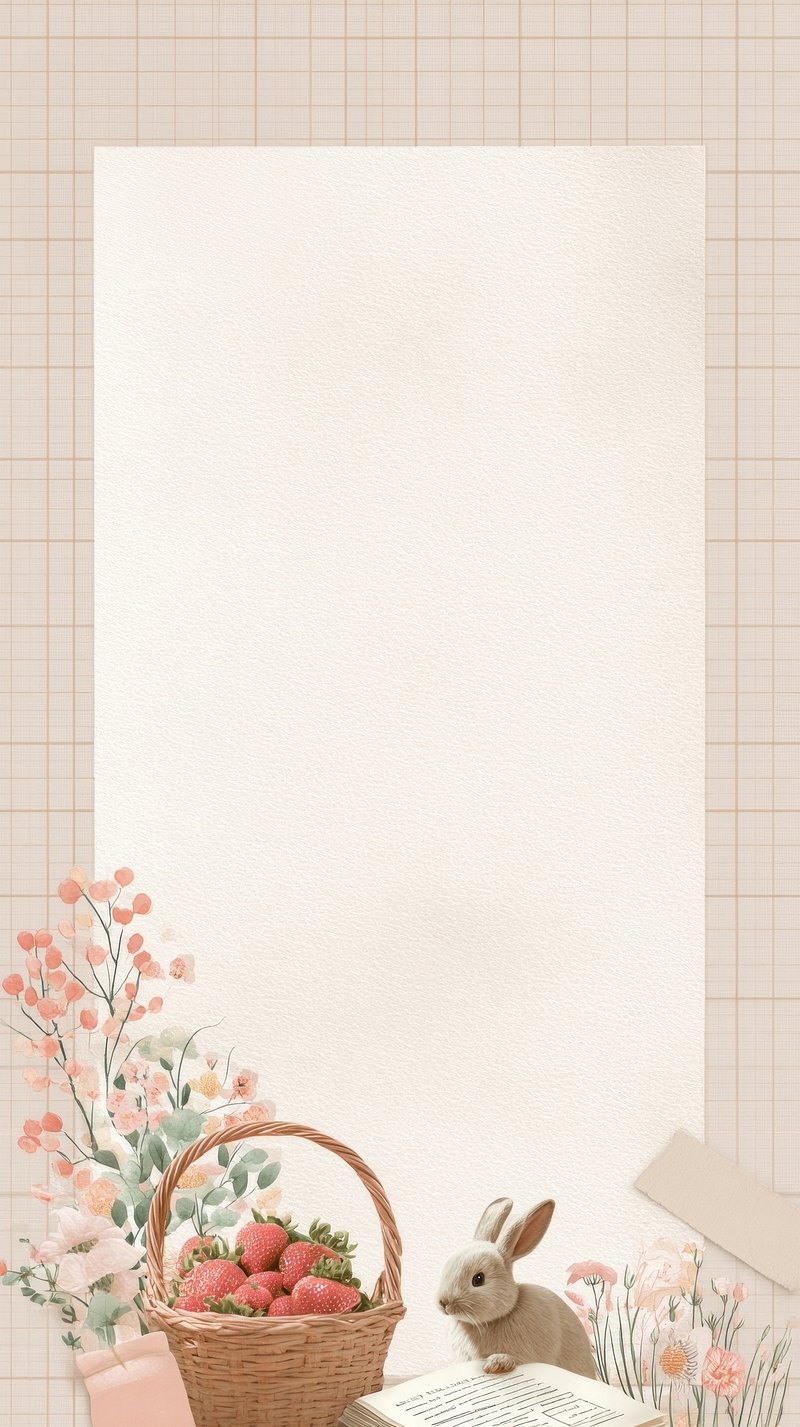 Charming rabbit with strawberry basket frame mobile wallpaper https://www.rawpixel.com/image/25285276/charming-rabbit-with-strawberry-basket-frame-mobile-wallpaperView license