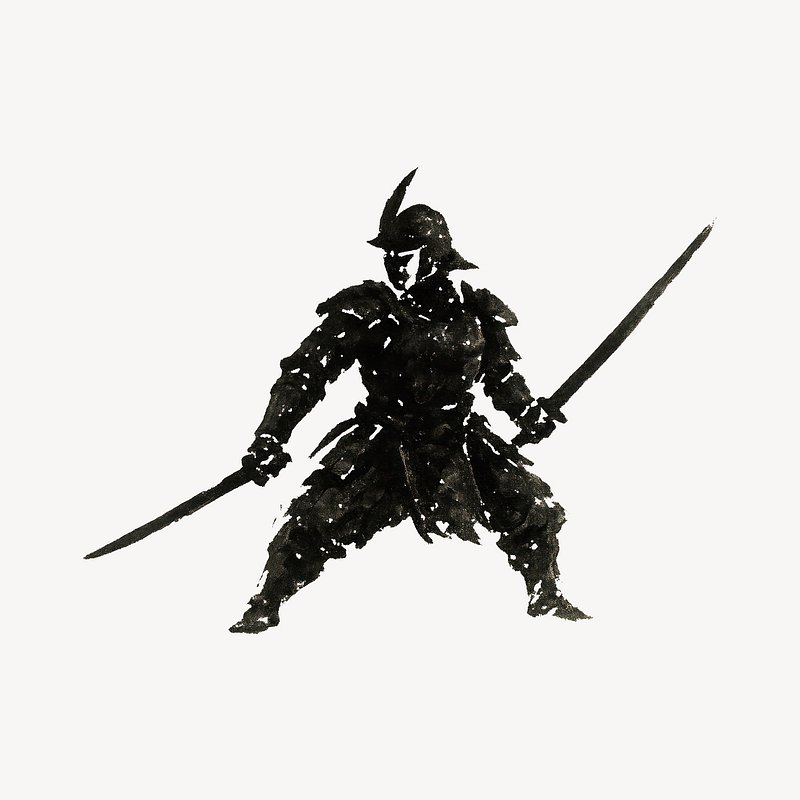 Samurai silhouette with dual swords. https://www.rawpixel.com/image/24890767/samurai-silhouette-with-dual-swordsView license