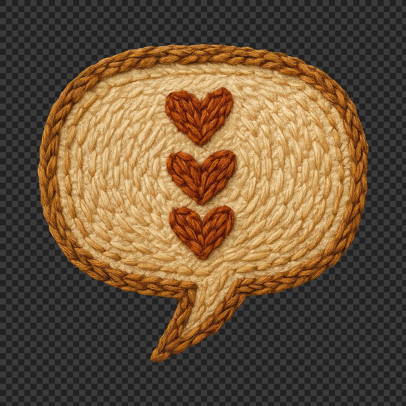 PNG Woven speech bubble with hearts. https://www.rawpixel.com/image/24064852/png-woven-speech-bubble-with-heartsView license