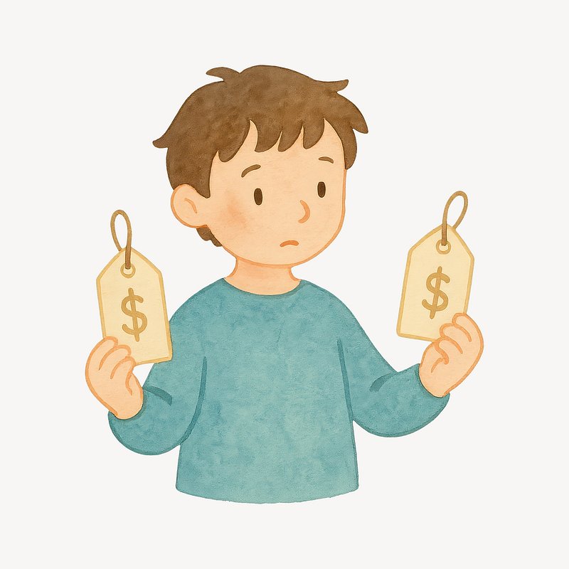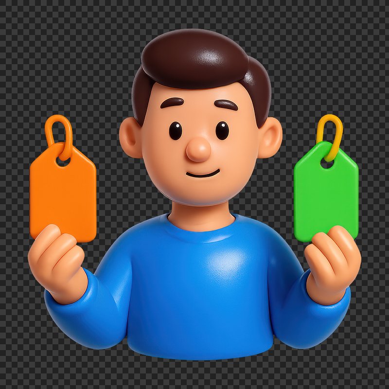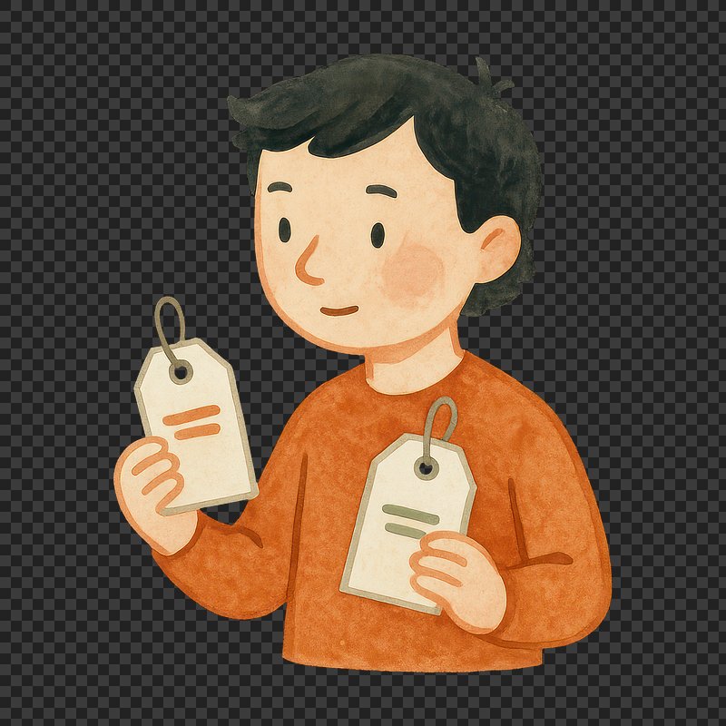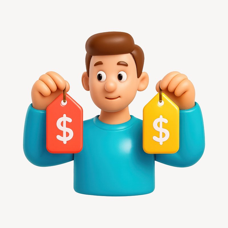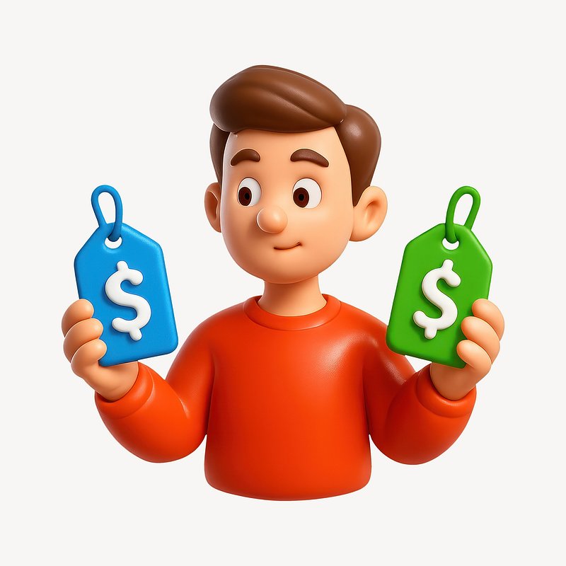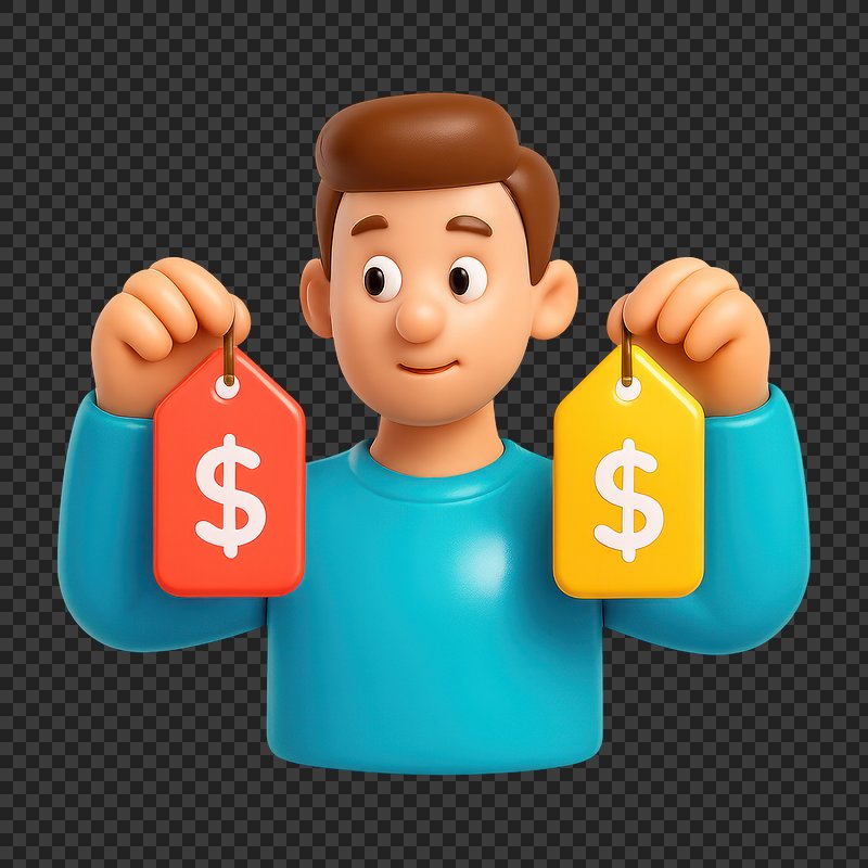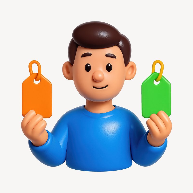 3D character comparing price tags. https://www.rawpixel.com/image/20963971/character-comparing-price-tagsView license