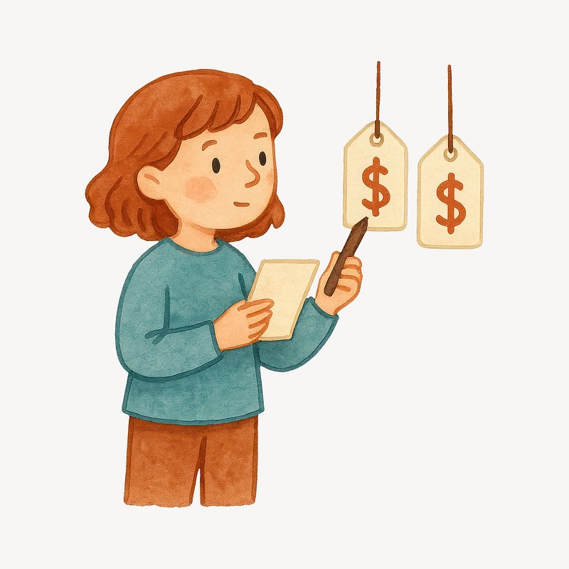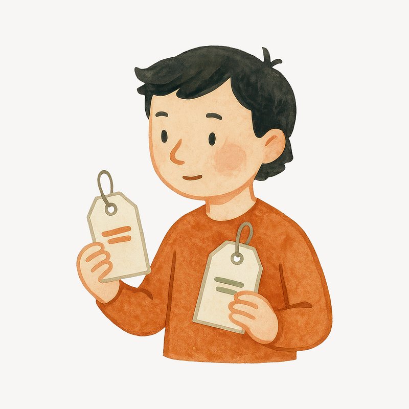 Person comparing price tags illustration. https://www.rawpixel.com/image/22907148/person-comparing-price-tags-illustrationView license