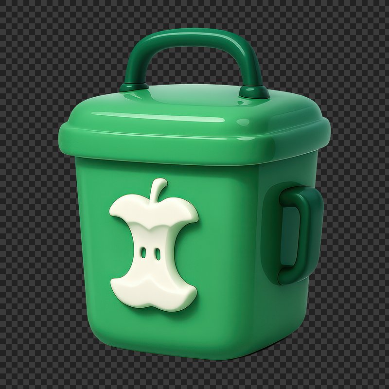 PNG Green compost bin with apple. https://www.rawpixel.com/image/20150217/png-green-compost-bin-with-appleView license