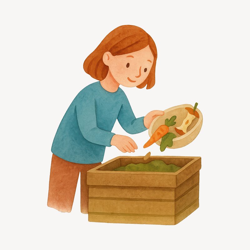 Woman composting organic kitchen waste. https://www.rawpixel.com/image/19251880/woman-composting-organic-kitchen-wasteView license