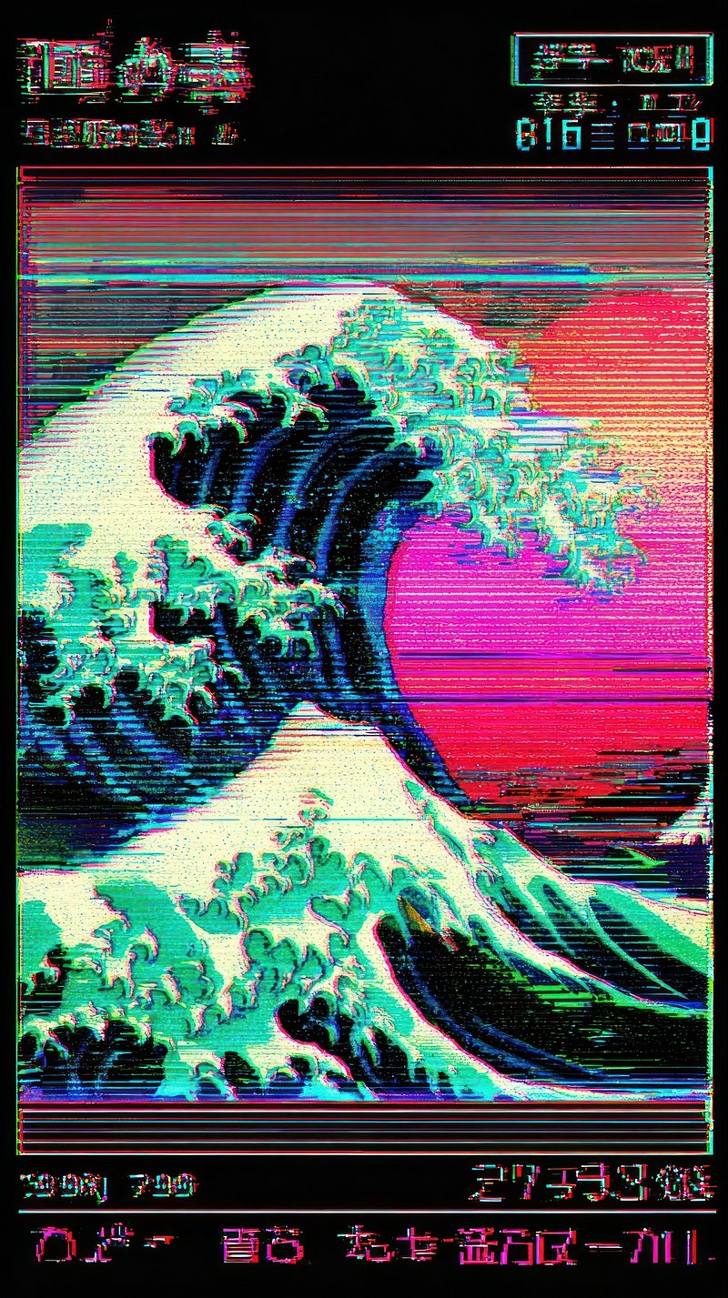 The Great Wave off Kanagawa art vaporwave aesthetic. https://www.rawpixel.com/image/19106156/the-great-wave-off-kanagawa-art-vaporwave-aestheticView license