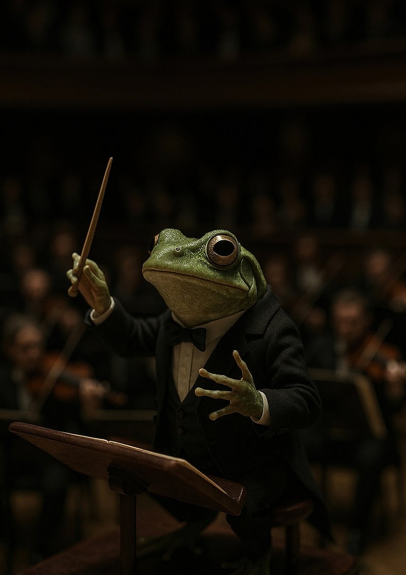 Frog conducting orchestra symphony https://www.rawpixel.com/image/17774430/frog-conducting-orchestra-symphonyView license