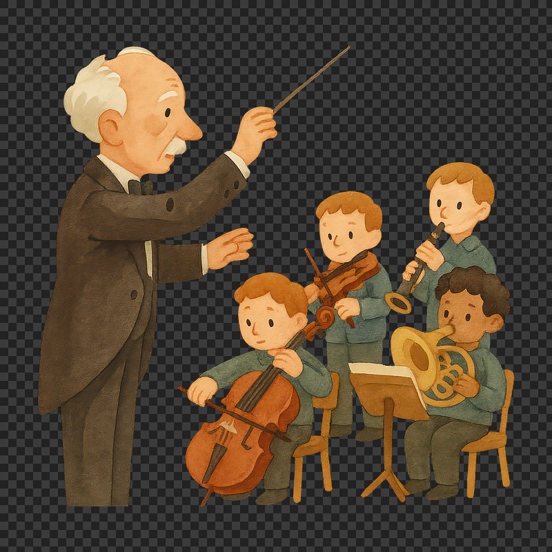 PNG Orchestra conductor leading children's ensemble. https://www.rawpixel.com/image/19289046/png-orchestra-conductor-leading-childrens-ensembleView license
