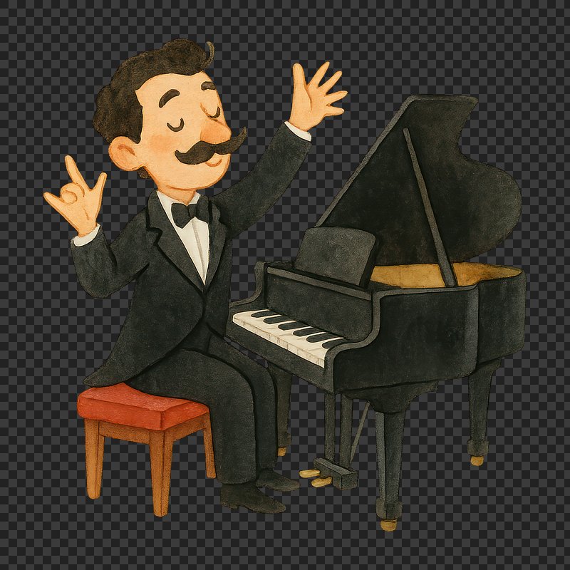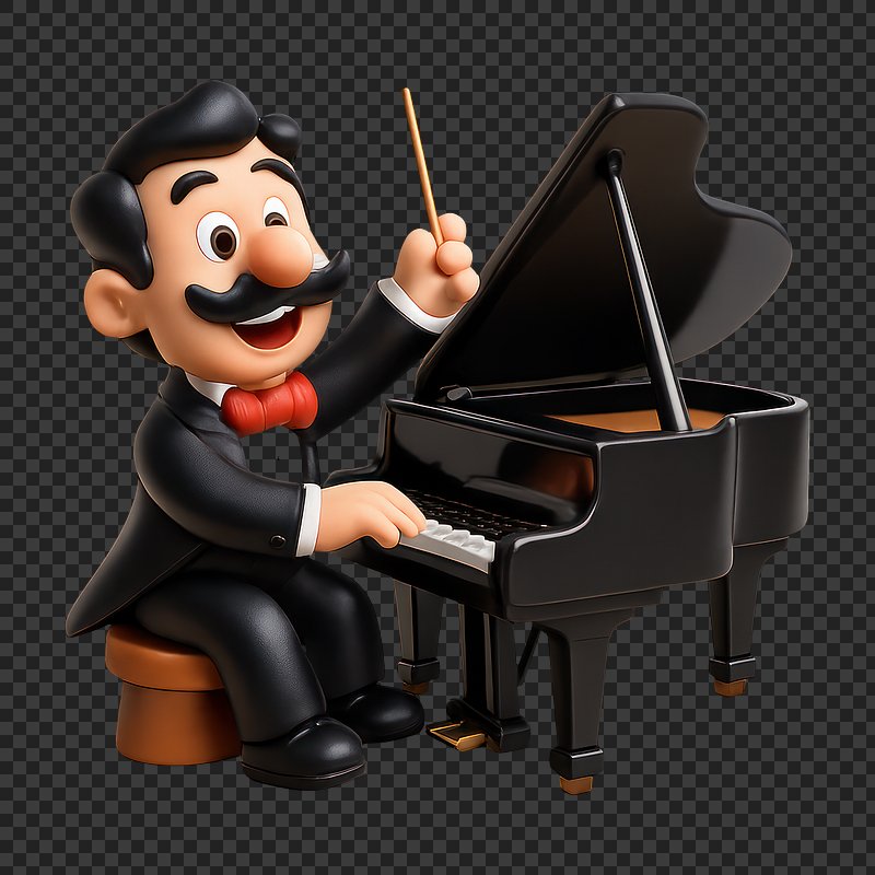 PNG Cartoon pianist playing grand piano. https://www.rawpixel.com/image/19469624/png-cartoon-pianist-playing-grand-pianoView license