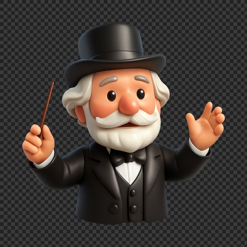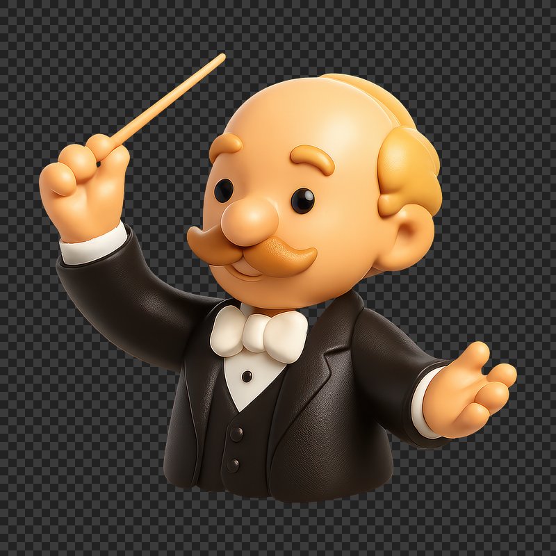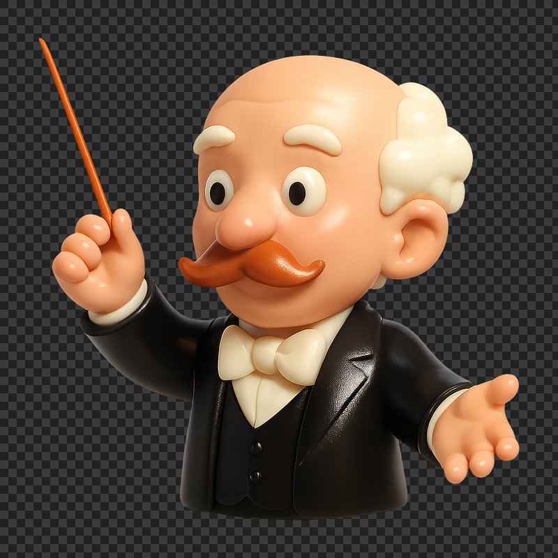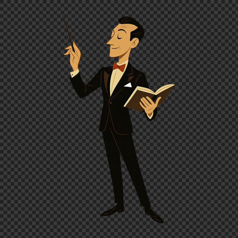 Cartoon conductor with baton. https://www.rawpixel.com/image/19464148/cartoon-conductor-with-batonView license