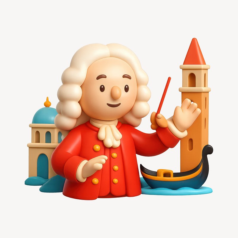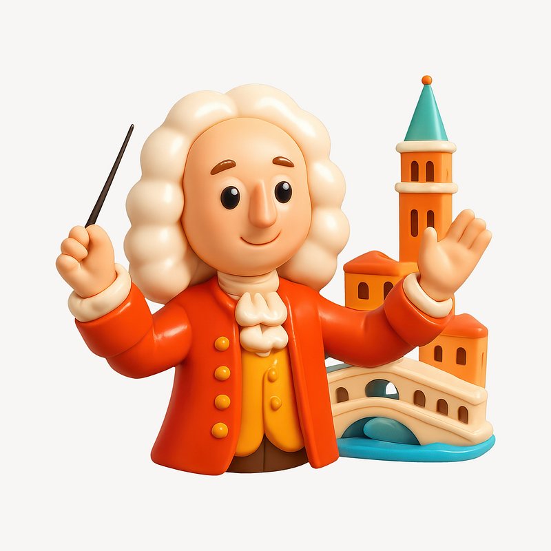 Whimsical conductor with Venetian landmarks. https://www.rawpixel.com/image/20309106/whimsical-conductor-with-venetian-landmarksView license
