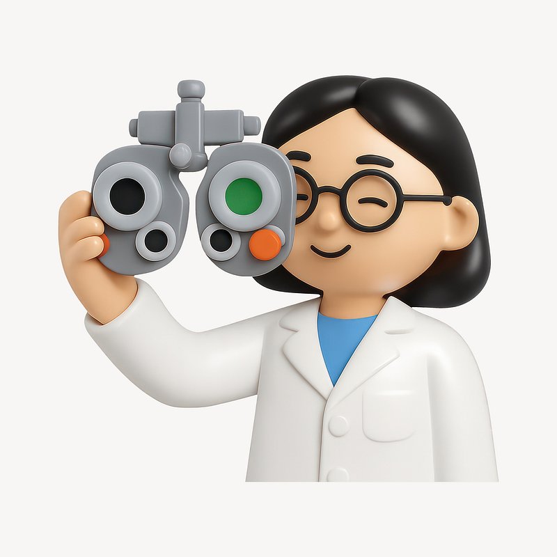 Optometrist cartoon conducting eye exam. https://www.rawpixel.com/image/20129512/optometrist-cartoon-conducting-eye-examView license