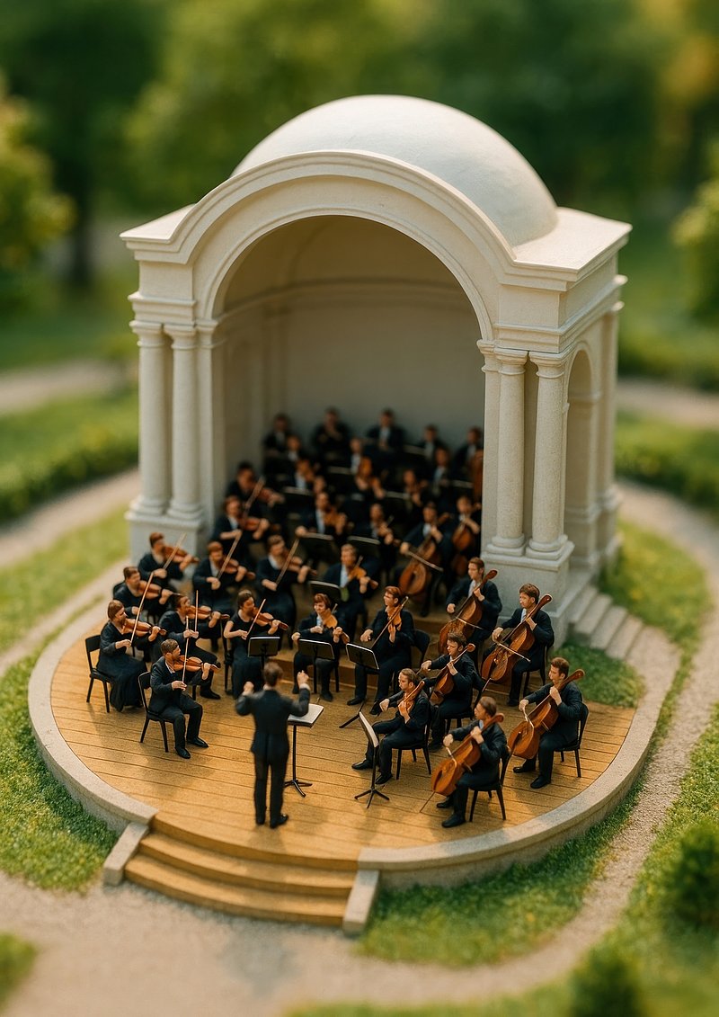 Miniature orchestra outdoor performance https://www.rawpixel.com/image/17730329/miniature-orchestra-outdoor-performanceView license