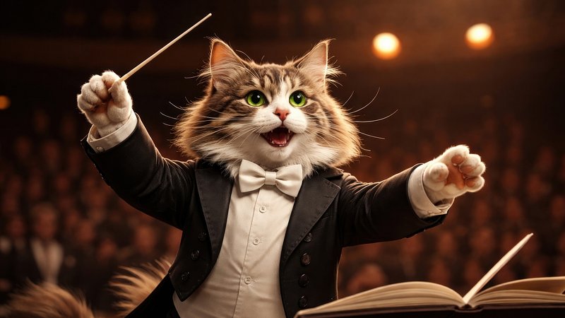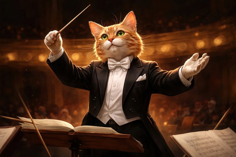Cat conductor orchestrating grand symphony. https://www.rawpixel.com/image/25355343/cat-conductor-orchestrating-grand-symphonyView license