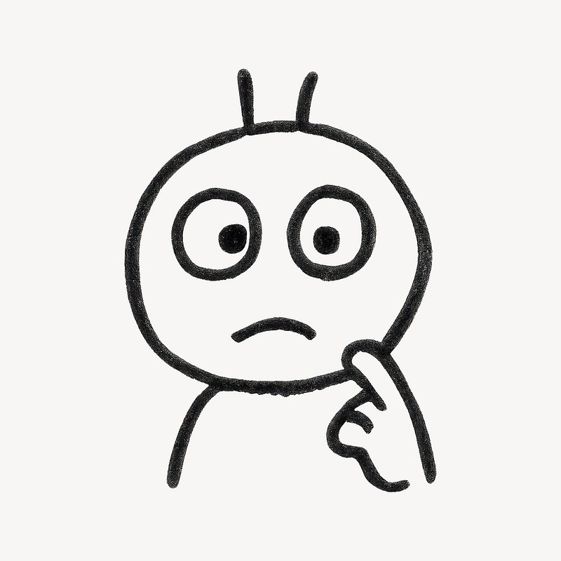 Confused doodle pondering expression. https://www.rawpixel.com/image/24599034/image-background-png-shadowView license