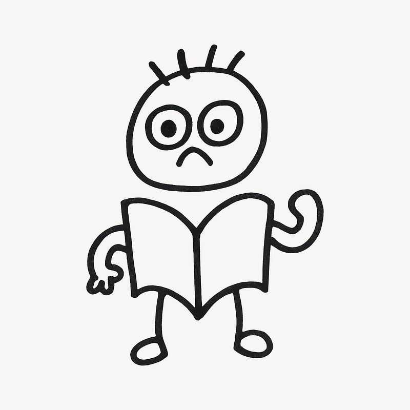 Confused stick figure reading book. https://www.rawpixel.com/image/24598202/image-background-png-shadowView license