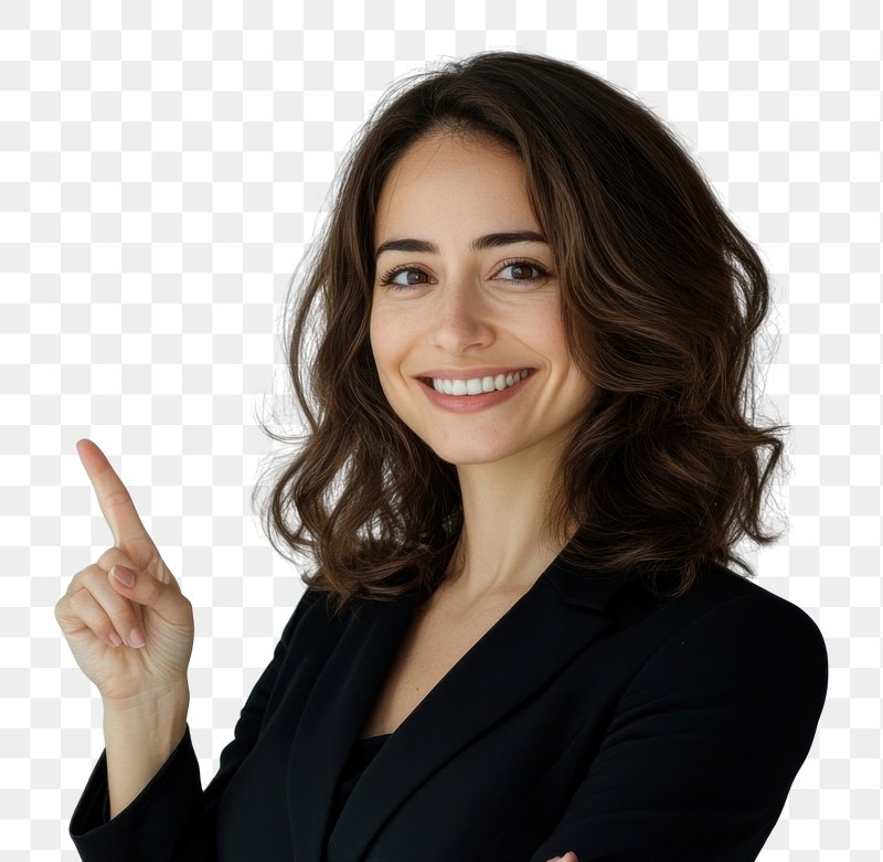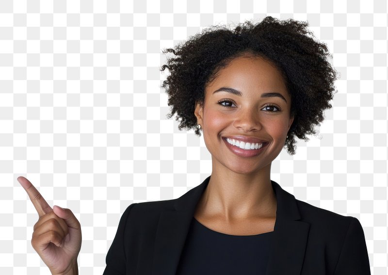 PNG Portrait of a smiling business woman pointing smile. https://www.rawpixel.com/image/16970534/png-portrait-smiling-business-woman-pointing-smileView license