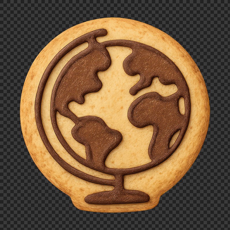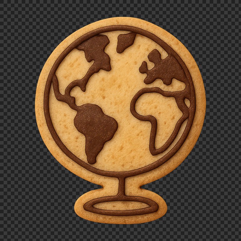 PNG Earth-shaped cookie with continents. https://www.rawpixel.com/image/24237364/png-earth-shaped-cookie-with-continentsView license