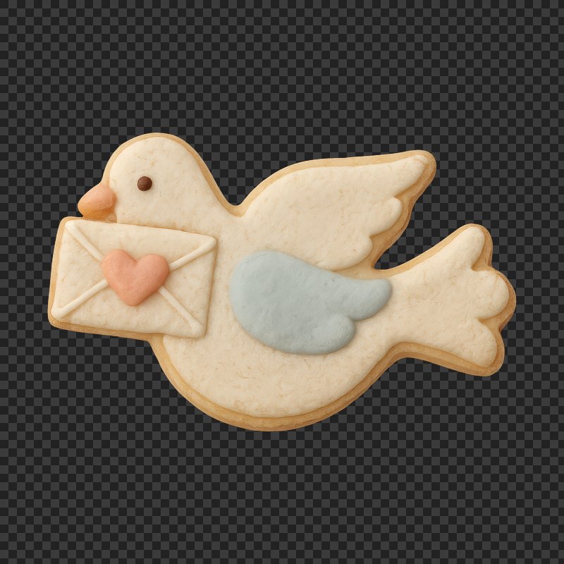 PNG Bird cookie with love letter https://www.rawpixel.com/image/24602502/png-bird-cookie-with-love-letterView license